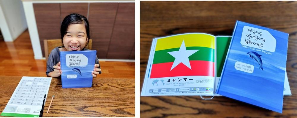 本のタイトルは「きょうせんそうがはじまると」。娘は作成しながら、以前作った翻訳絵本のことを思い出し、遠い国の子どもたちに想いを寄せつつ、真剣な眼差しで取り組んでいました。