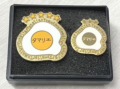 左:五ツ星タマリエのバッジ / 右:三ツ星タマリエのバッジ