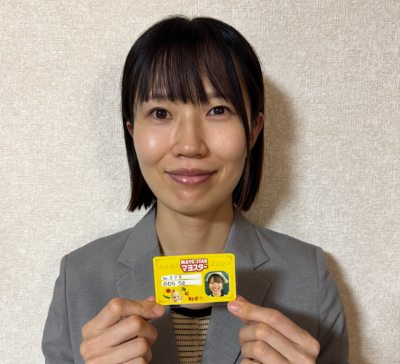 認定証である「マヨスターカード」を手にした時の誇らしげな笑顔。その表情から達成感と自信がしっかり伝わってきました。