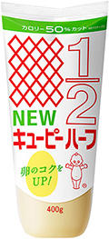 キユーピーは、当社マヨネーズに比べてカロリーが半分の「キユーピーハーフ」を4年ぶりに全面刷新します。おいしさのポイントである卵の“コク味”を向上させ、商品への満足度を高めることにより、購入層の拡大と、市場の活性化を目指します。