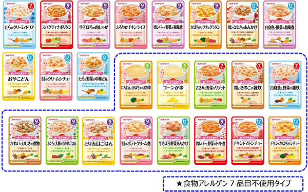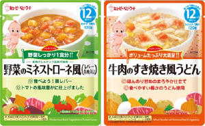 キユーピーは、レトルトパウチ入りのベビーフード「ハッピーレシピ」シリーズから、“野菜しっかり1食分”がコンセプトの4品と、“ボリュームたっぷり大満足”がコンセプトの3品を新たに発売します。