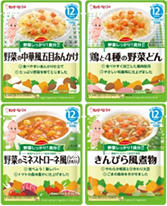 “野菜しっかり1食分”がコンセプトの4品は、赤ちゃんの食事に野菜を積極的に取り入れたいというニーズにこたえて開発した商品です。家庭でやわらかく調理するのが難しい、にんじんやごぼうなどの根菜類を多く取り入れているのが特徴です。また、味覚形成のサポートにも役立てたいとの思いから、和・洋・中のメニューを揃えました。