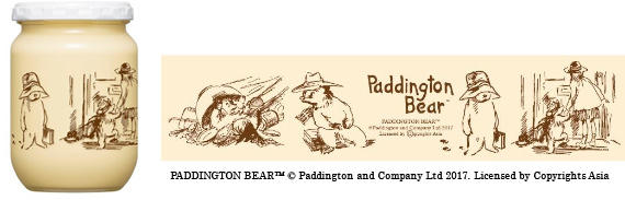 食卓に置くと見た目にも楽しい「パディントン ベア」のデザインを施した、瓶入りのキユーピー マヨネーズです。2017年は新デザインで展開します。