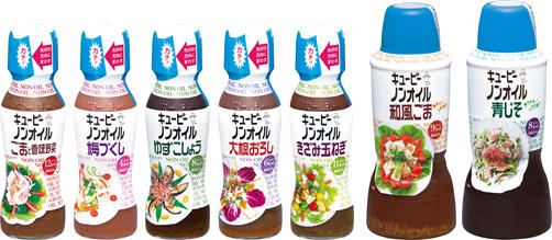 キユーピーは、1984年に日本初のノンオイルのドレッシングタイプ調味料「ジャネフ ノンオイル」を発売しました(1989年からキユーピーブランドで販売を開始)。油を使わない健康感に加え、さっぱりと野菜を食べられることから主に健康を気遣う方を中心に支持を得てきました。夏向きのイメージが強いカテゴリーでしたが、秋冬の素材と合う「ノンオイル大根おろし」「ノンオイルゆずこしょう」等のラインアップを強化したことで、近年は通年商品として認知が広がっています。2015年8月には、ノンオイルでありながらも油を使ったような満足感のある「銀キャップ」シリーズを発売し、ラインアップを拡充しています。
