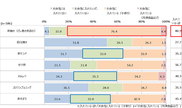 (何らかの卵料理をお弁当に入れたい・入れていると答えた人ベース、n=578)
