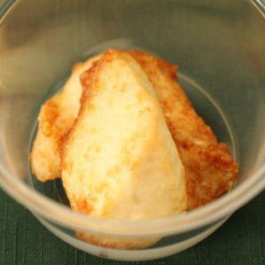 ひと口大のそぎ切りにした鶏むね肉をボウルに入れて、マヨネーズを加えて10分間漬け込んだのち、油をひいたフライパンで焼いた群をサンプル【MS(+)】とした。マヨネーズを加えない群【MS(-)】は、マヨネーズに含まれるのと同量の食塩を加え、漬け込みをした。