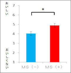 | 検定方法 | 臭いの強度評価を0~6点(ない→非常に強い)、 おいしさの評価を1~7点(非常においしくない→非常においしい)とし、 その点数の平均値の差を、対象のあるt検定で検定した。 |