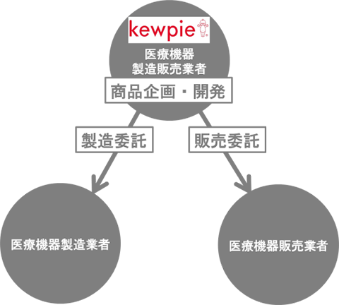 キユーピーは、医療機器製造販売業者として、商品設計・開発・製造・販売をトータルで管理する。