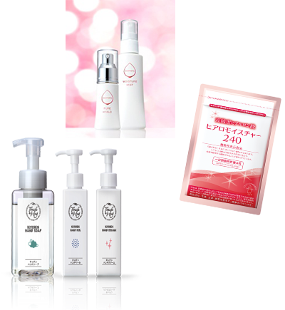 一方で、さまざまなヒアルロン酸の機能を身近に感じてほしいという考えから、販路限定で市販用商品も展開しています。現在では、スキンケア商品、機能性表示食品、キッチンハンドケア商品など、ラインアップが広がっています。