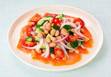 大豆とスモークサーモンの