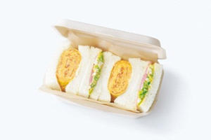 マヨネーズを加えてふわふわに焼いたボリュームたっぷりの厚焼きたまごサンド。少し甘めの味わいはコールスロー&ハムサンドとの相性もピッタリ!