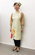 また、2017年度は、レタスの外葉や芯など食品に加工できない部位で染めた布を使った「野菜染めエプロン」 (写真右) を作成し、講師が着用しながら、食を取り巻く環境課題への取り組みについても伝えています。