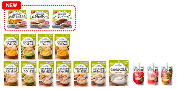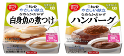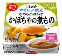 キユーピーは、市販用介護食「やさしい献立」シリーズの“かまなくてよい”区分から、電子レンジ対応カップ容器入りの「かぼちゃの煮もの」「白身魚の煮つけ」「ハンバーグ」の3品を新発売します。