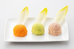 赤パプリカ、バジル、ビーツの彩りを生かした、3色のポテトサラダです。鮮やかな色と味わいをお楽しみください。