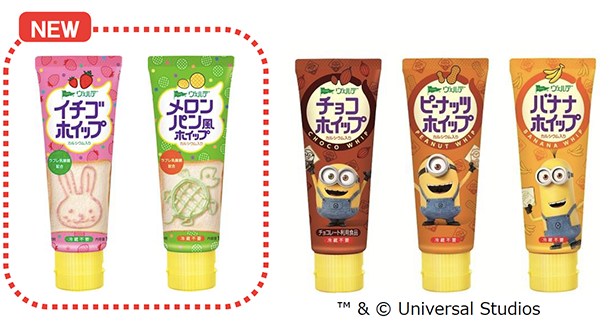 「イチゴホイップ」は、イチゴの甘酸っぱさとふんわりなめらかな食感が特徴のホイップです。「メロンパン風ホイップ」は焼かずにパンに塗るだけでメロンパン風の味わいと香りが楽しめるふんわり軽いホイップです。