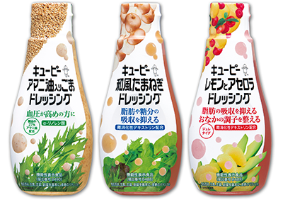 キユーピーは、機能性表示食品の「アマニ油入りごまドレッシング」、「和風たまねぎドレッシング」、「レモンとアセロラドレッシング」の3品について、販売エリアを北海道・東北・関東甲信越に拡大します。