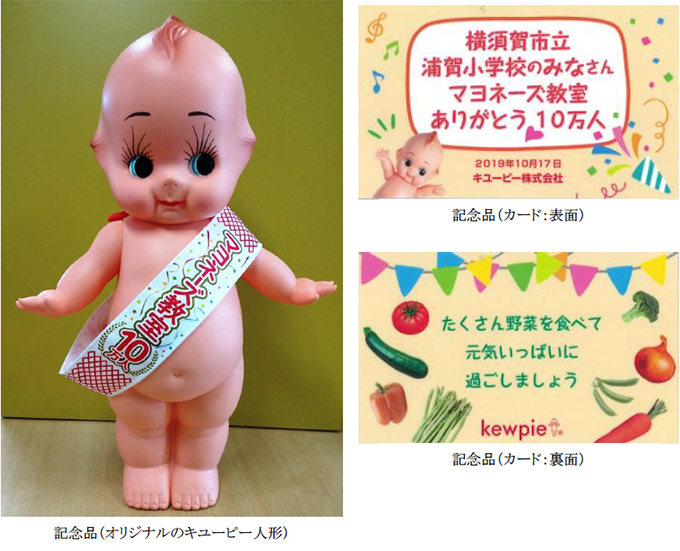 キユーピーが2002年から食育活動として実施している、小学校への出前授業「マヨネーズ教室」の参加児童数が、2019年10月17日(木)に累計10万人を達成しました。当日、対象となった神奈川県横須賀市立浦賀小学校5年生74人の代表児童に記念品を贈呈し、感謝を伝えました。