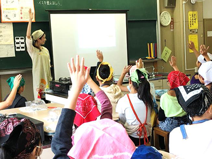 「マヨネーズ教室」は、2002年から実施している小学生向けの出前授業です。社内認定制度「マヨスター」※2の資格を持つグループ従業員が全国の小学校に赴き、身近な食品であるマヨネーズや野菜の重要性について講義と実習を行います。