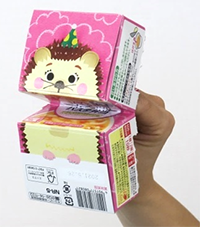 - トレーにもパペットにも使える動物のイラストをデザインした外箱を採用しています。