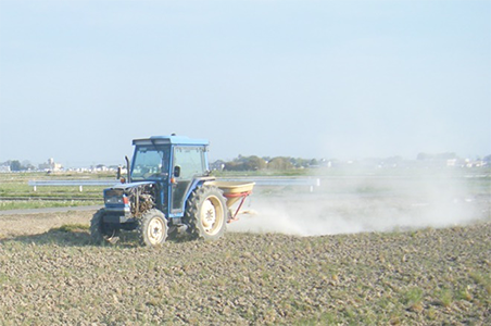 水田に卵殻を施肥する様子(埼玉県の協力農家)
