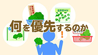 食品を選ぶ際の着眼点や食品表示の見方、購入のプロセス、保存について解説しています。(約4分)
