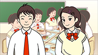 食生活に関する問いかけを、男女2名の中学生(アニメーション)と一緒に考え、学んでいく内容です。食事の重要性や、食生活と環境の関連性などを、どのチャプターからでも楽しく視聴できます。(約20分)