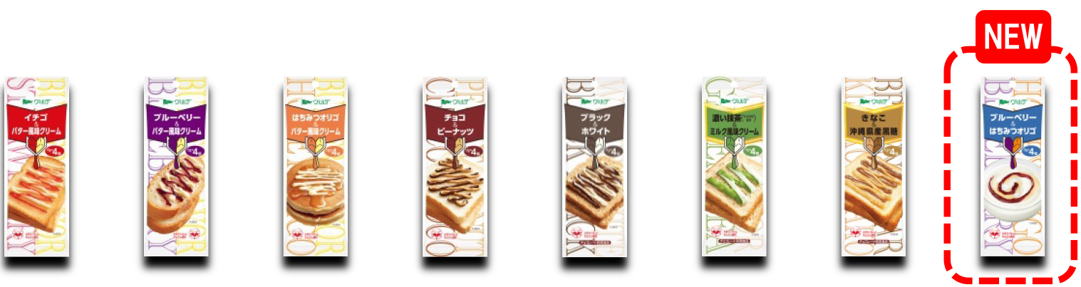 新発売の「ブルーベリー&はちみつオリゴ」は、ブルーベリーの甘酸っぱさと、はちみつオリゴのコクのある甘さの組み合わせを楽しめる商品です。同シリーズは家庭内の個食化が進んだこと、好きな味を個別に選べること、などの理由から売り上げがここ数年好調に伸長しています。そこでパンやホットケーキ以外にも使用用途を広げるため、ヨーグルトと相性のよいブルーベリージャムとはちみつオリゴを採用しました。