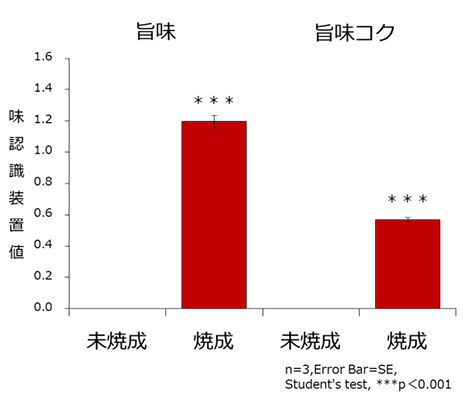図4.焼成後の旨味と旨味コク(味認識装置)