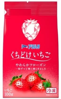 - 「やわらかフローズン製法」(特許製法)により凍っていても柔らかく、またイチゴのほどよい甘さとフルーティーな香りをしっかりと感じられます。