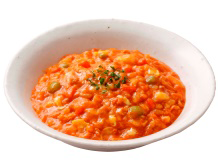 トマトのうま味がきいたチキンライスにまろやかな卵を加えました。