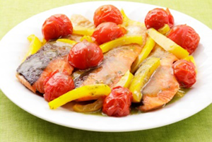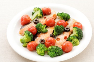 | 鮭の蒸し焼き トマトのソース ブラックオリーブ&ケッパー入り |