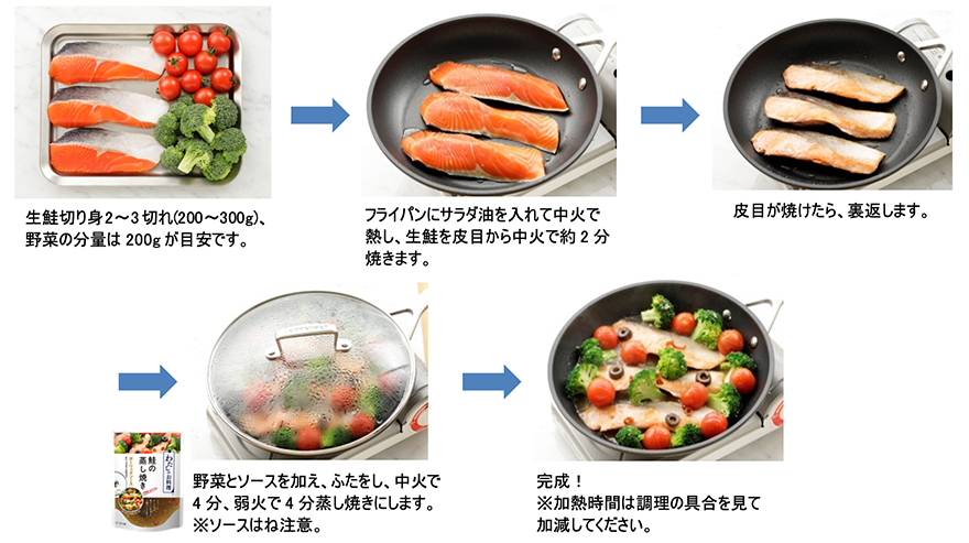 近年、一世帯当たりの支出金額の多い鮭※2を使った、フライパンで簡単にできる蒸し焼きのメニューを提案し、調理の時間を取れない子育て世代や、魚料理のレパートリーを増やしたいと考えている人のニーズに応えます。