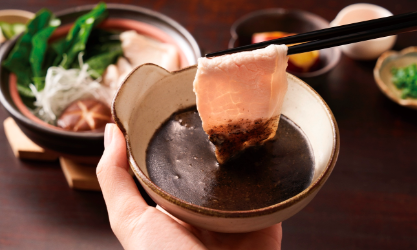 - 「シェフズエマルション」タイプで、素材に絡みやすい粘度と黒い色調に仕立てました。