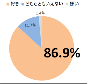 今回の「たまご白書 2021」で、卵の好意度を尋ねたところ(単一回答)、「とても好き」「やや好き」を合わせると86.9%となり、日本人の約9割は「卵が好き」なことが分かります。そんな卵好きな国民性をさらにひもとく調査結果の一部を紹介します。
