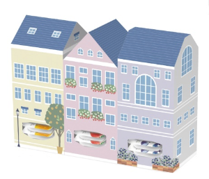 北欧のアパートメントをイメージしたボックスデザインは、インテリアになじみやすいよう、柔らかな色合いにしています。また、ボックス単独で自立性があり、側面の全てにデザインを施すことで、棚や食卓などに置いて楽しむことができます。さらに中身が無くなったら、屋根の部分から箱を開けてポーションジャムを足すことも可能です。