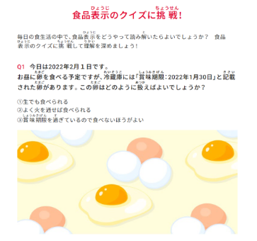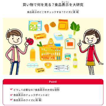 今回公開した「買い物で何を見る?食品表示を大研究」は、食品表示は、どうして必要で、何がチェックポイントなのかを解説し、最後にクイズに挑戦する内容になっています。