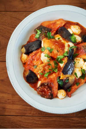 鮭のトマトソース とろとろなすとモッツァレラ入り