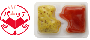ソーセージと相性の良いトマトソースとあらびきマスタードが一つになり、片手でパキッと簡単に中身が絞り出せます。