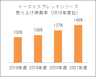 食パンを食べる機会が増えた※ことにより、手軽に家で楽しめる食パンのアレンジメニューなどが話題になっています。そのような背景の中「ヴェルデ トーストスプレッド」シリーズの売上も伸長しています。