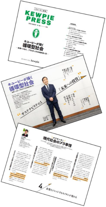キユーピー株式会社(本社:東京都渋谷区、代表取締役 社長執行役員:髙宮 満、以下キユーピー)は、「キユーピー通信」Vol.109『キユーピーが描く 循環型社会』を8月2日(火)に発行します。キユーピーグループのサステナビリティ活動の中でも「資源の有効活用・循環」は重要なテーマです。SDGsや3R、プラスチック循環促進法施行などに対する、キユーピーグループのプラスチックとの向き合い方について、社長のインタビューを交えてお伝えします。