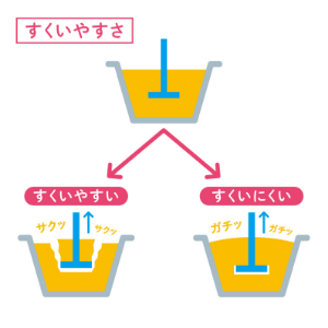 ■「すくいやすさ」:食具(スプーン)で容易にすくえるか