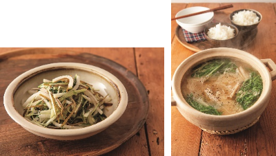 「大根と鶏手羽のみそ鍋」「大根と水菜のもみ漬け」>