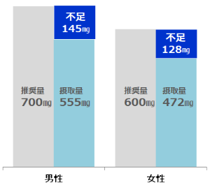 ※5 摂取量:厚生労働省 平成30年国民健康・栄養調査報告 第1部栄養素等摂取状況調査の結果 75歳以上男女 栄養素等摂取量「カルシウム」の中央値