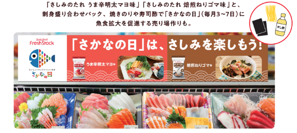 水産庁が制定した「さかなの日」(毎月3~7日)に魚食拡大を促進する売り場作りを提案します。