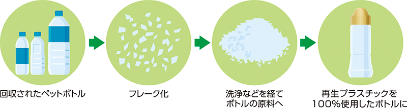 ※2 主に清涼飲料水用のペットボトルを回収し、粉砕・洗浄後、高温下で一定時間処理し、汚れを除去する方法「メカニカルリサイクル(物理的再生法)」で再生したPET樹脂。