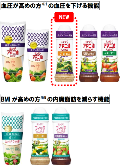 【キユーピー 機能性表示食品のマヨネーズ類・ドレッシング類】