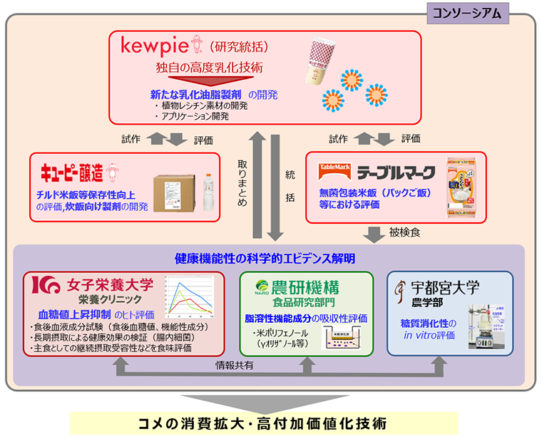 ※3 コンソーシアム構成団体:キユーピー株式会社、学校法人香川栄養学園 女子栄養大学 栄養クリニック、国立大学法人宇都宮大学農学部、国立研究開発法人農業・食品産業技術総合研究機構(農研機構)食品研究部門、テーブルマーク株式会社、キユーピー醸造株式会社