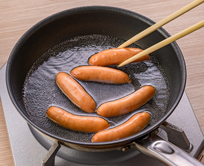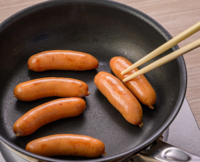 「トマト&あらびきマスタード」は、ソーセージにぴったりな商品です。そこで、料理研究家のヤミーさんに“いつものソーセージをもっとおいしく食べる”方法をレシピサイトNadiaで紹介してもらいました。ヤミーさんのおすすめは「ボイル焼き」です。その名の通り、ボイルしてから焼くので、香ばしい焼き色も肉汁も両方しっかり味わえます(3月12日公開予定)。