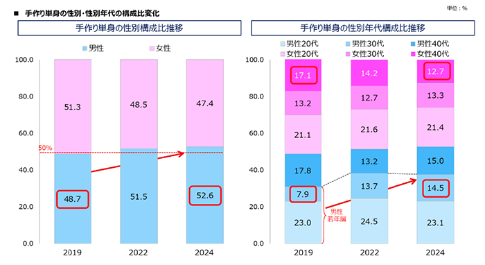 資料2:手作り単身の性別・性別年代の構成比変化