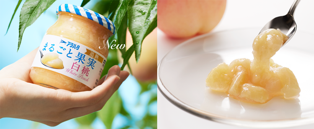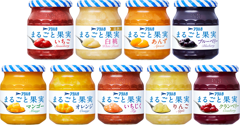 「アヲハタ まるごと果実」は、“ごろりとした果肉”“さわやかでフルーティーな香り”“くだものそのものを食べるような、みずみずしさ”が特徴のフルーツスプレッドです。果実と果汁だけのおいしさをとことん追求しており、フルーツを手軽に味わえる商品です。